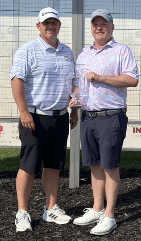 Johnston’s J.D. Anderson (right) won the neck-to-neck 2023 Southeast Iowa Amateur at The Preserve on Rathbun Lake in Moravia, feeding on a strong first round performance. Anderson withstood a strong challenge by West Des Moines’ Grant Smith, who carded the lowest final round score, to win by one.