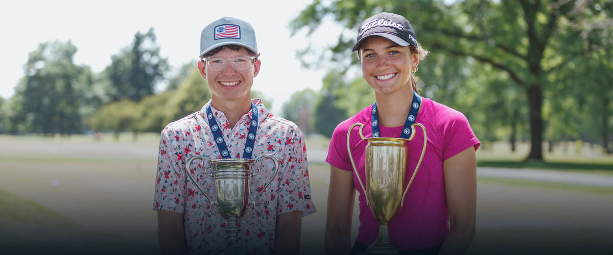 Bettendorf’s Maura Peters (above right) and Bettendorf’s Ethan Blomme (above left) took home the titles at the Iowa Junior Amateur Championship contested at Pheasant Ridge Golf Course in Cedar Falls.