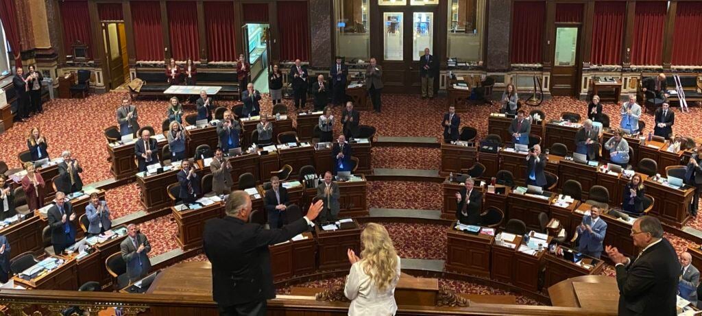 Iowa’s Gene Elliott (shown above) was recognized by both the Iowa House of Representatives (House Resolution 109 – Watch here) and Iowa State Senate (Senate Resolution 104) Thursday morning. The resolutions honored Elliott for his recent success at the U.S. Senior Amateur and R&A Senior Amateur Championship in 2021, as well as other achievements on and off the course.