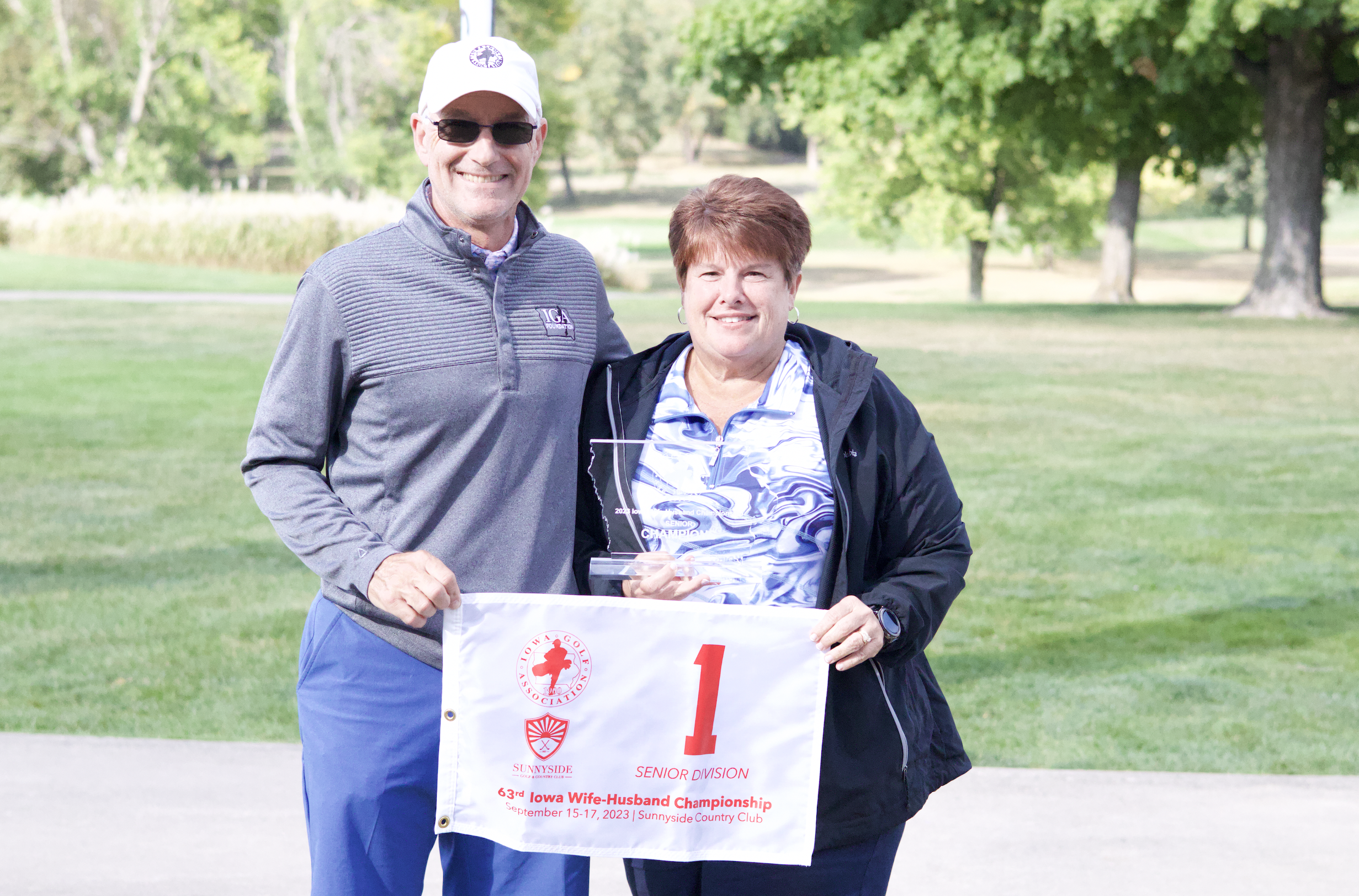 In the Senior Division (110 years combined) Sondra and Curtis Holck (right) were consistent – a pair of 77s around Sunnyside Country Club in Waterloo was good for a six shot win over a trio of teams, which included Nancy and Dave Olberding, Laura and Tom Christensen and Stacey and Bob Ketcham. The Olberdings closed with a round of 74 (+2) to climb close to the lead, but in the end the Holcks were just too steady.