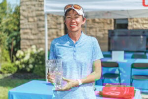 Not to miss out on the excitement, the Open Division was up for grabs as well. Dubuque’s Rose Kubesheski finished third at (+32) 248, only one stroke away from Waterloo’s Kelly Nelson and Des Moines’ Tish Boothe (right), who headed to a playoff after carding (+31) 247. Boothe, who had not played a solo event since a local tournament in 2011, won after one hole. Boothe’s dramatic return to the Iowa golf scene sparks anticipation for her next appearance.