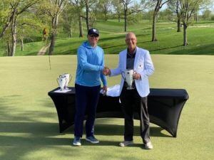 The reigning 2021 IGA Player of the Year, Nate McCoy (above left), of Ankeny, began his 2022 season with a three-point victory at The Classic, located at Elmwood Country Club in Marshalltown.