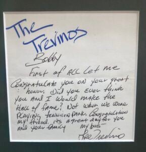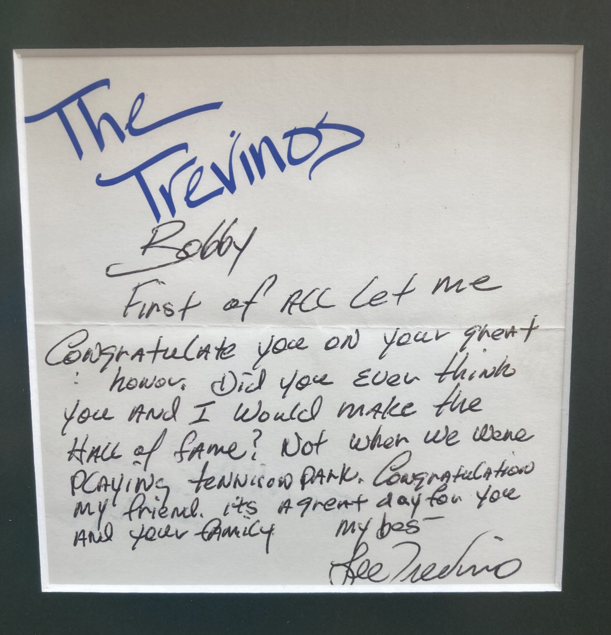 Moreland received a hand written note of congratulations from golf legend Lee Trevino upon his induction into the Iowa Golf Association Hall of Fame. Moreland met Trevino in Dallas in 1963 and maintains a close friendship to this day.