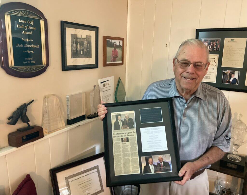 “I actually didn’t start playing until the seventh grade and then really made up for lost time. Day after day, Mom would drop me off at the course at 8:00 a.m. and come pick me up an hour after dark,” recalled Moreland, the well-decorated Iowa Section PGA golf professional and Iowa Golf Hall of Fame member, during a recent interview at his home in Ottumwa. “She would give me a dollar for the day for a hot dog and a Coke. We’d play 36 holes and then putt for dimes underneath the streetlight. On a good day, I’d return home with more than a buck.”