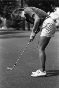Whitehead knew there was something special in the making during her formative years when her game advanced quickly and she started to shoot par in her early teens on the Sibley course. She went on to capture the 1978 and 1979 Iowa Girls Junior and Iowa High School Girls High School golf championships and qualified for the 1979 U.S. Women’s Open, won by Luverne, MN, native Jerilyn Britz. She added the Iowa Women’s Amateur titles in 1979, 1981 and 1982. Despite a notable prep career, Whitehead flew mostly below the collegiate recruiting radar with just a handful of offers. She joined the Iowa State University Women’s Golf Team, coached by Hawarden native Joan Gearhart, and made an instant impact.