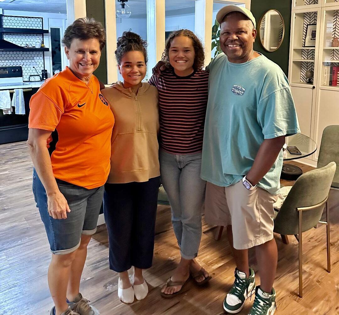 Barb Thomas Whitehead (left) poses with daughters Emma, Sarah and husband Trent at their Phoenix home.