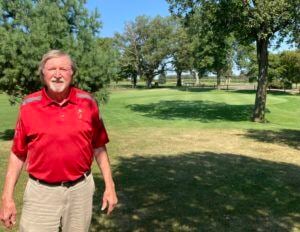 Ivan Miller poses in front of the ninth green at Pine Lake County Club in Eldora, where he holds the course record with a 59 and has played thousands of rounds over the years.