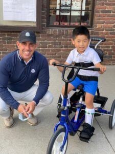 Ian Pak (pictured right with Rocky Sposato, General Manager / COO – A.H. Blank & Waveland Golf Course), of Waukee, is a 5-year old boy with a diagnosis of cerebral palsy, which affects his mobility. When walking, Ian requires either a hand to assist him or uses his reverse wheeled walker or bilateral quad canes to get around home and school. Ian has recently started taking 3-5 independent steps forward since using the specialized bike in physical therapy. The bike that was given to him will allow Ian to ride with the greatest degree of safety and independence. It will allow him to interact with family and friends in a recreational environment while improving his overall fitness and strength in a safe manner.