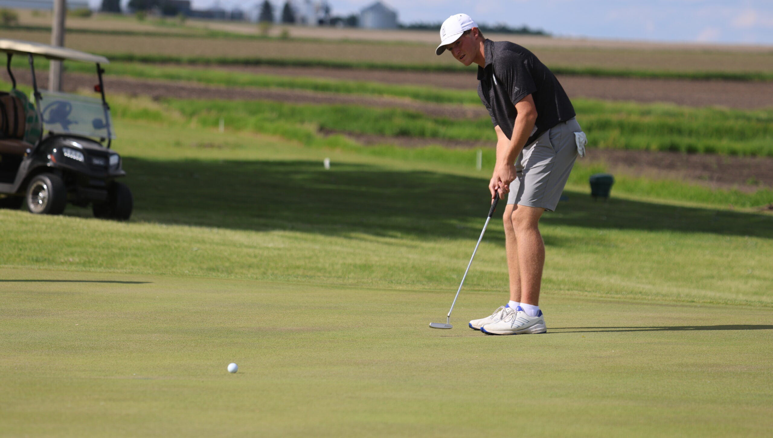 Jake Weissenburger putts for birdie on No. 16 during final-round play on Sunday at the Lake Creek Amateur at BVU Lake Creek in Storm Lake. Weissenburger defended his title by shooting 69-72.